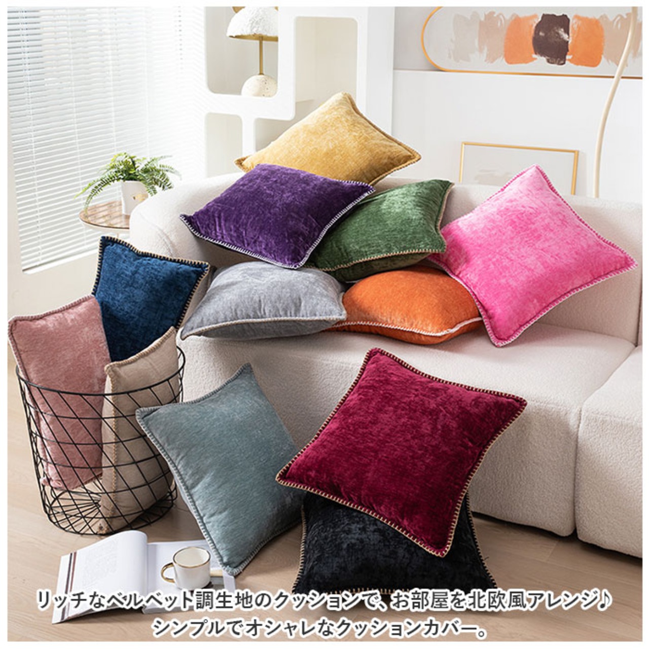 ・リッチなベルベット調生地のクッションで、お部屋を北欧風アレンジ♪シンプルでオシャレなクッションカバー。