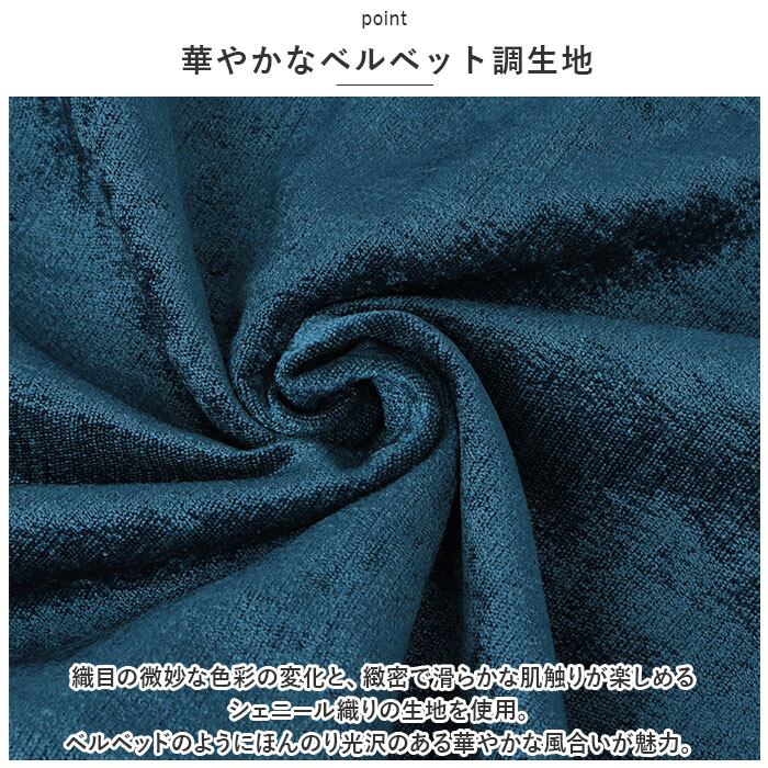 ・織目の微妙な色彩の変化と、緻密で滑らかな肌触りが楽しめるシェニール織りの生地を使用。ベルベッドのようにほんのり光沢のある華やかな風合いが魅力。