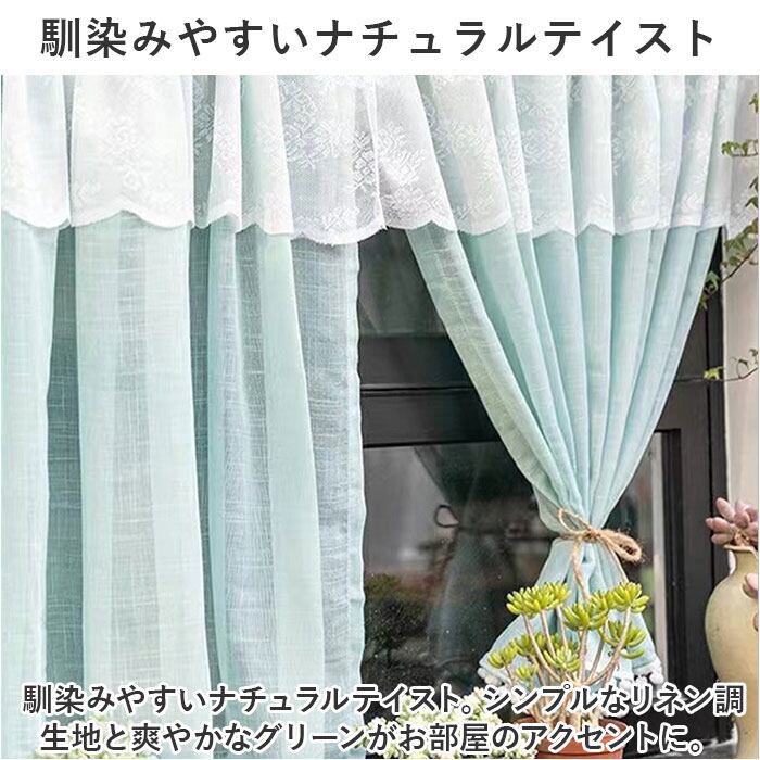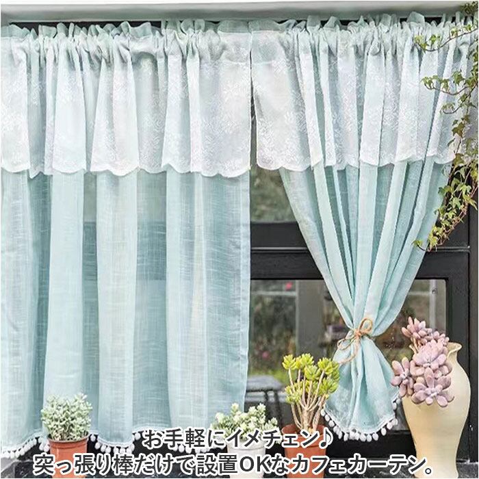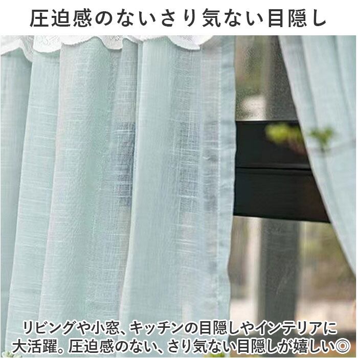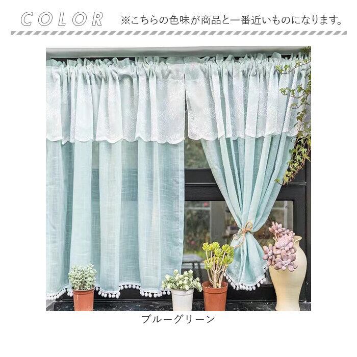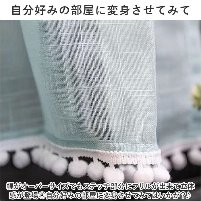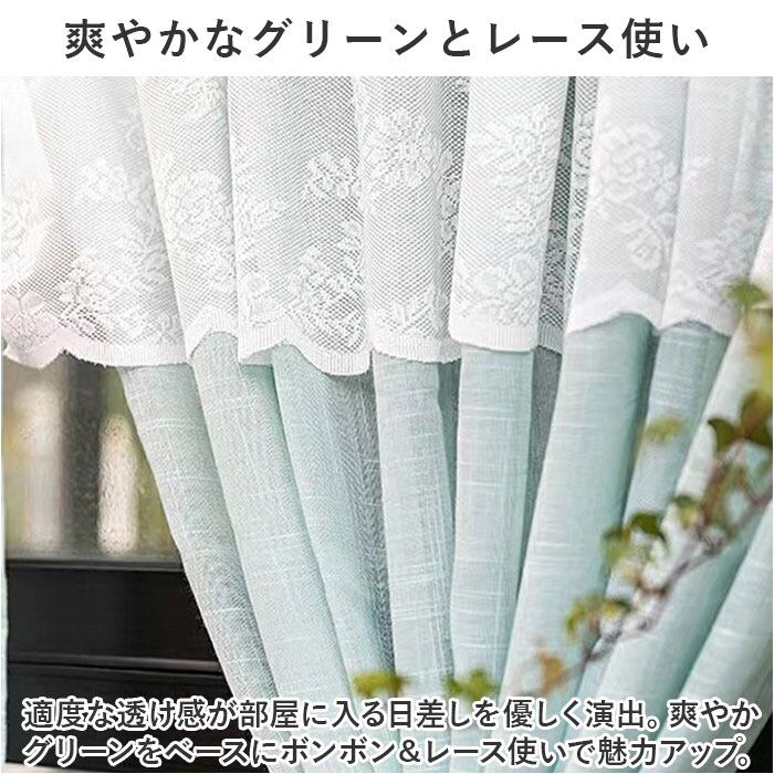 ・適度な透け感が部屋に入る日差しを優しく演出。爽やかグリーンをベースにボンボン&レース使いで魅力アップ。