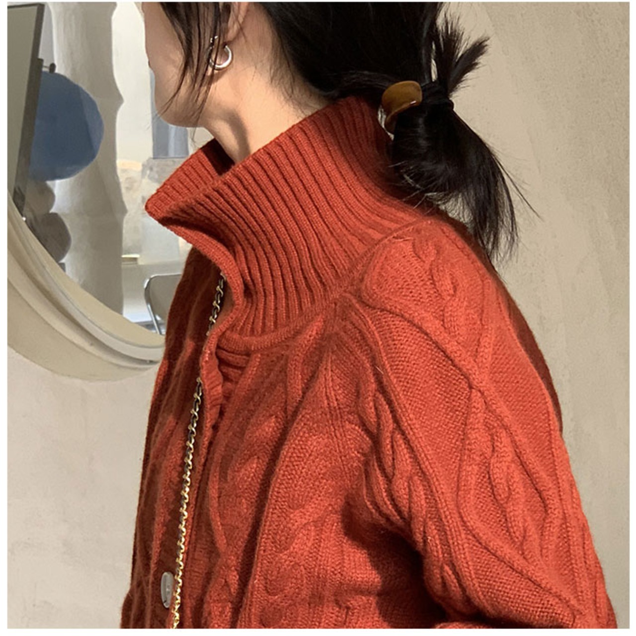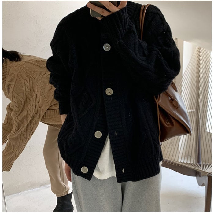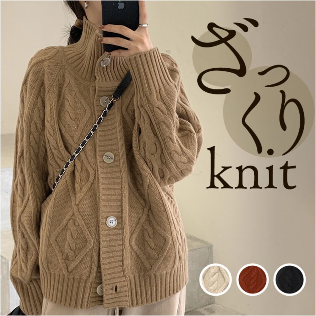 ・ハイネック&大きめボタンが大人可愛い♪ざっくりニットカーディガンが登場。