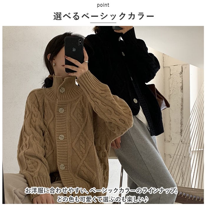 ニット カーディガン ハイネック ニットカーディガン 通販 羽織り 羽織 長袖 厚手 ボタン カジュアル 秋 冬 レディース 婦人服 アウター おしゃれ 防寒対策 通勤 通学