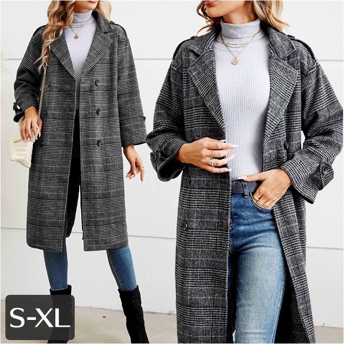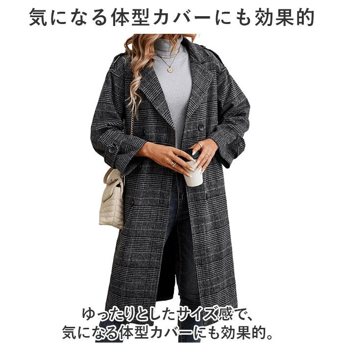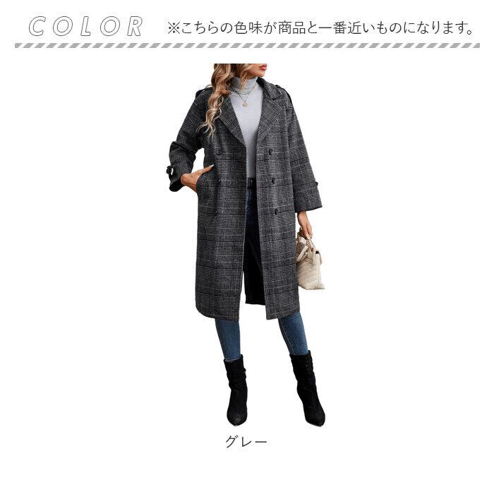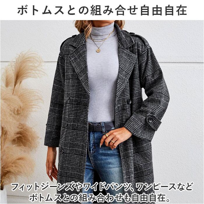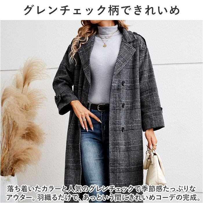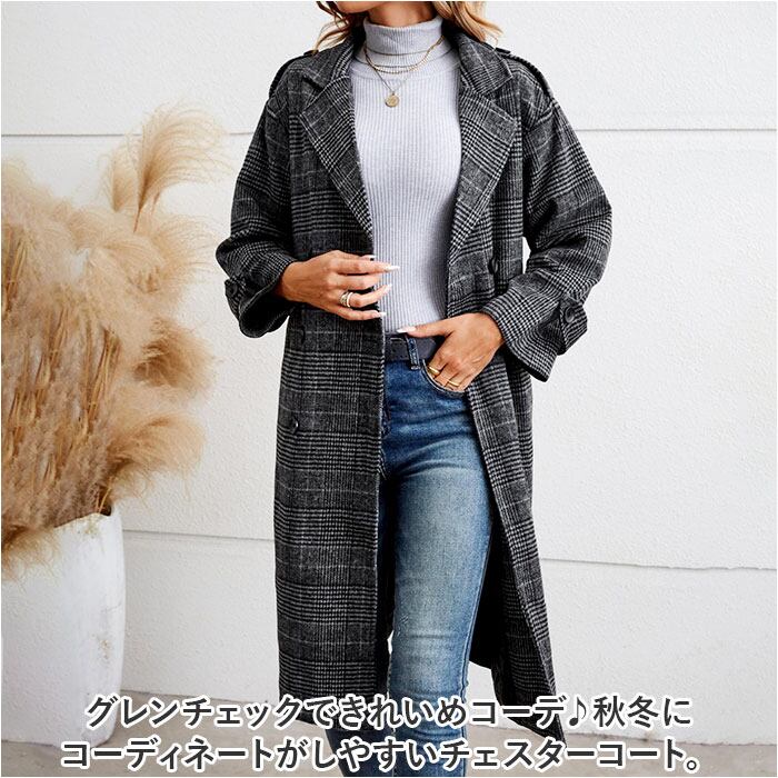 チェスターコート レディース 冬 通販 オーバーコート ロングコート アウター コート ジャケット 上着 羽織 長袖 ダブル チェック きれいめ おしゃれ 防寒 暖かい テーラード ポケット 通勤 通学 旅行 グレンチェック カジュアル かわいい ゆったり