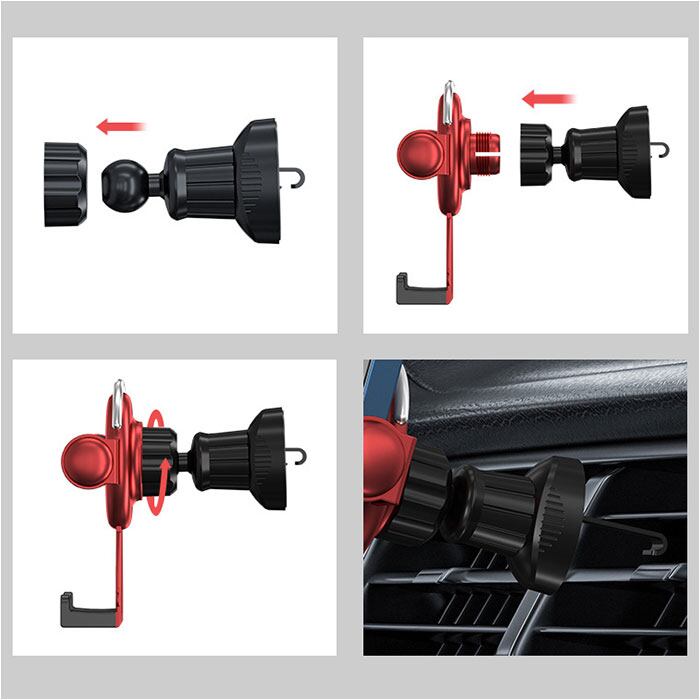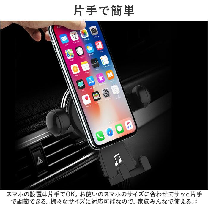 ・車のエアコンの吹き出し口に引っ掛けるだけの簡単設置◎運転席にいても、ハンズフリーでスマホ画面の確認ができる。