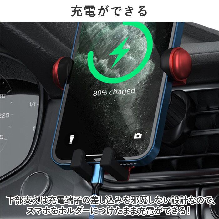 ・下部支えは充電端子の差し込みを邪魔しない設計なので、スマホをホルダーにつけたまま充電ができる!