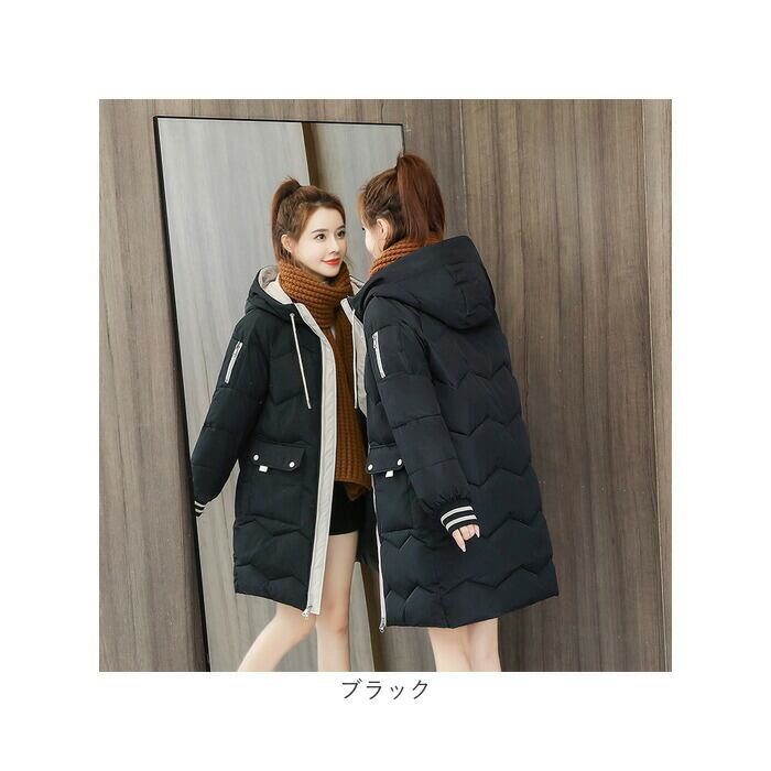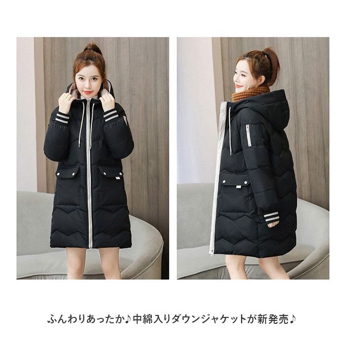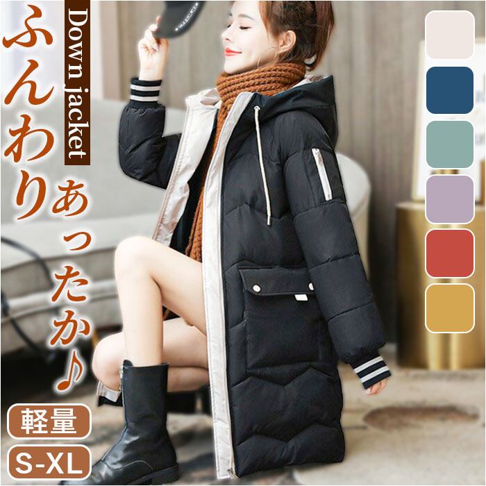 中綿 コート レディース 通販 アウター ジャケット 上着 ロングコート ミディアム丈 軽量 防寒 フード付 シンプル 無地 通勤 通学 旅行 お出かけ カジュアル 暖かい 冬 スタンドカラー かわいい カワイイ おしゃれ オシャレ