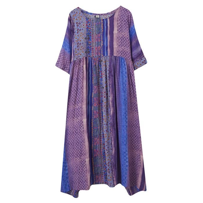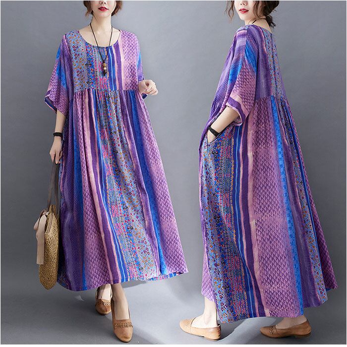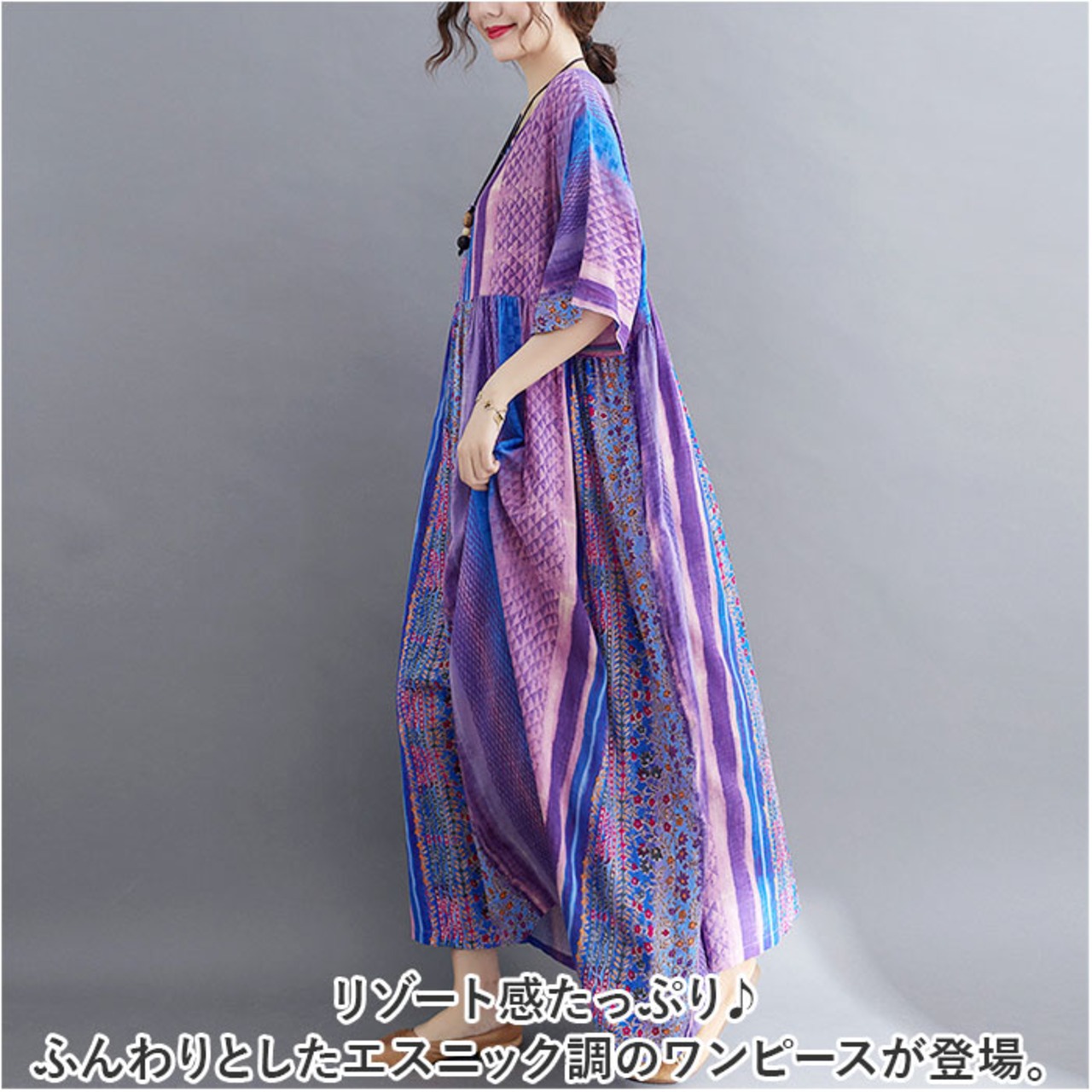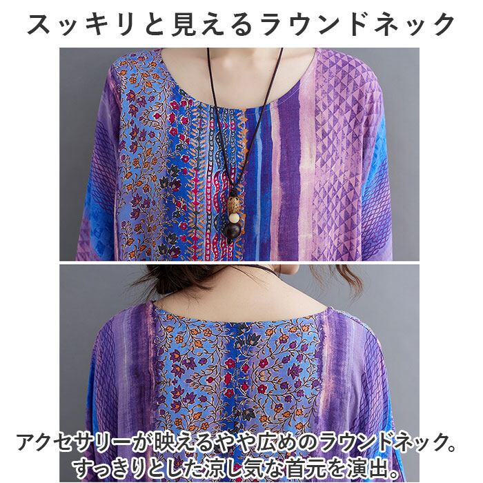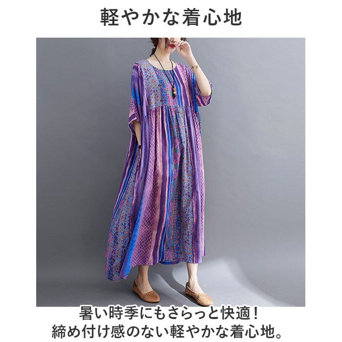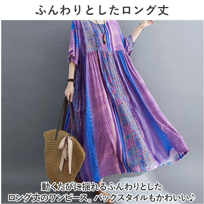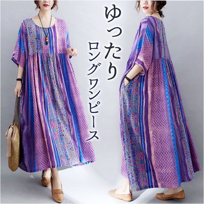 ロングワンピース レディース 半袖 通販 マキシワンピース エスニック ワンピース リゾートワンピース 春 夏 ワンピ コットン 綿 おしゃれ かわいい 五分袖 花柄 ノーカラー 通勤 通学 お出かけ 旅行 カジュアル 大人 ゆったり きれいめ 体型カバー