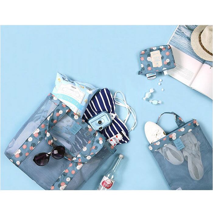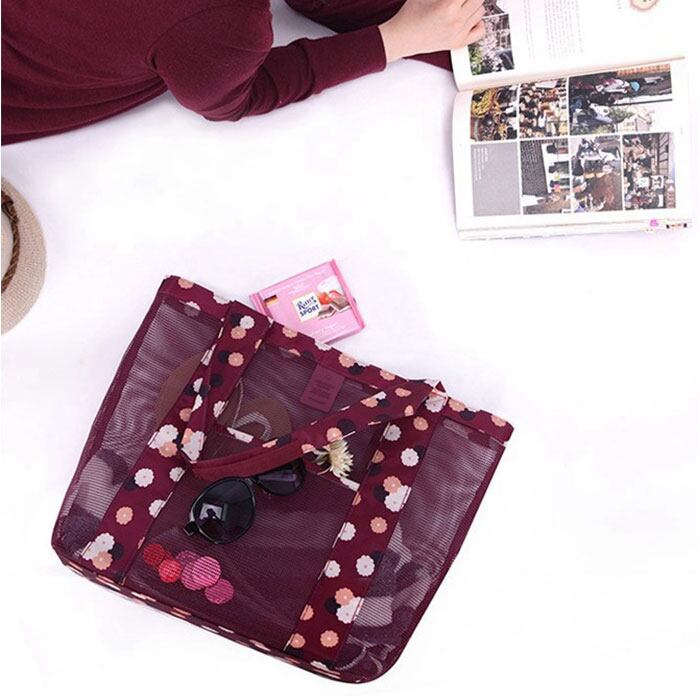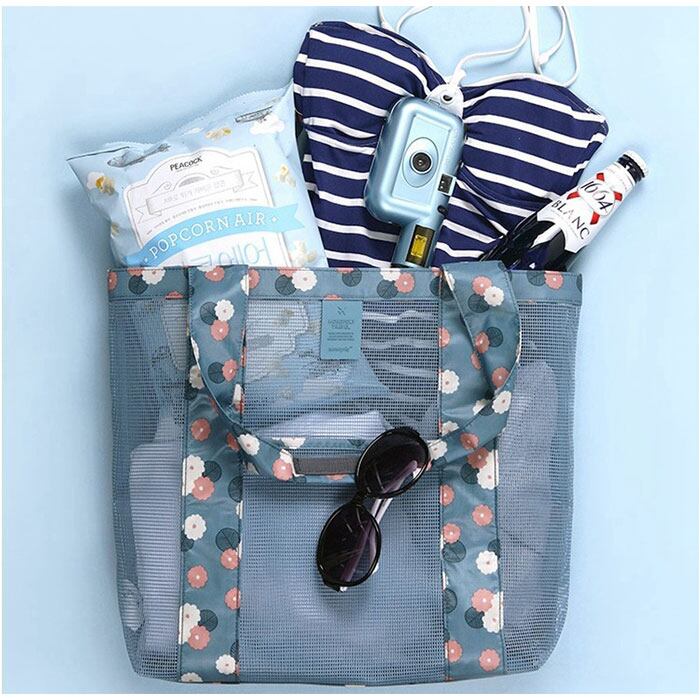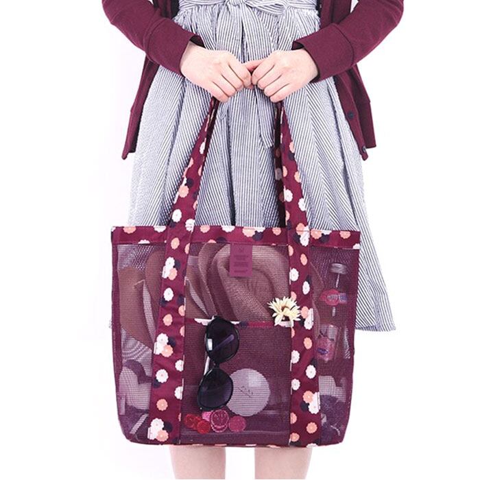 ・メッシュ生地でできているから、通気性抜群でバッグが濡れても速く乾く!使い終わった後のタオルや水着を入れてもOK!