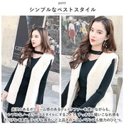・ベストの生地全体が、光沢のある豊かな毛足とふんわりとした手触りが魅力のフェイクファー素材。軽く袖を通すだけで、ファッションに暖かみのある素材感と季節感を素敵にブレンド☆