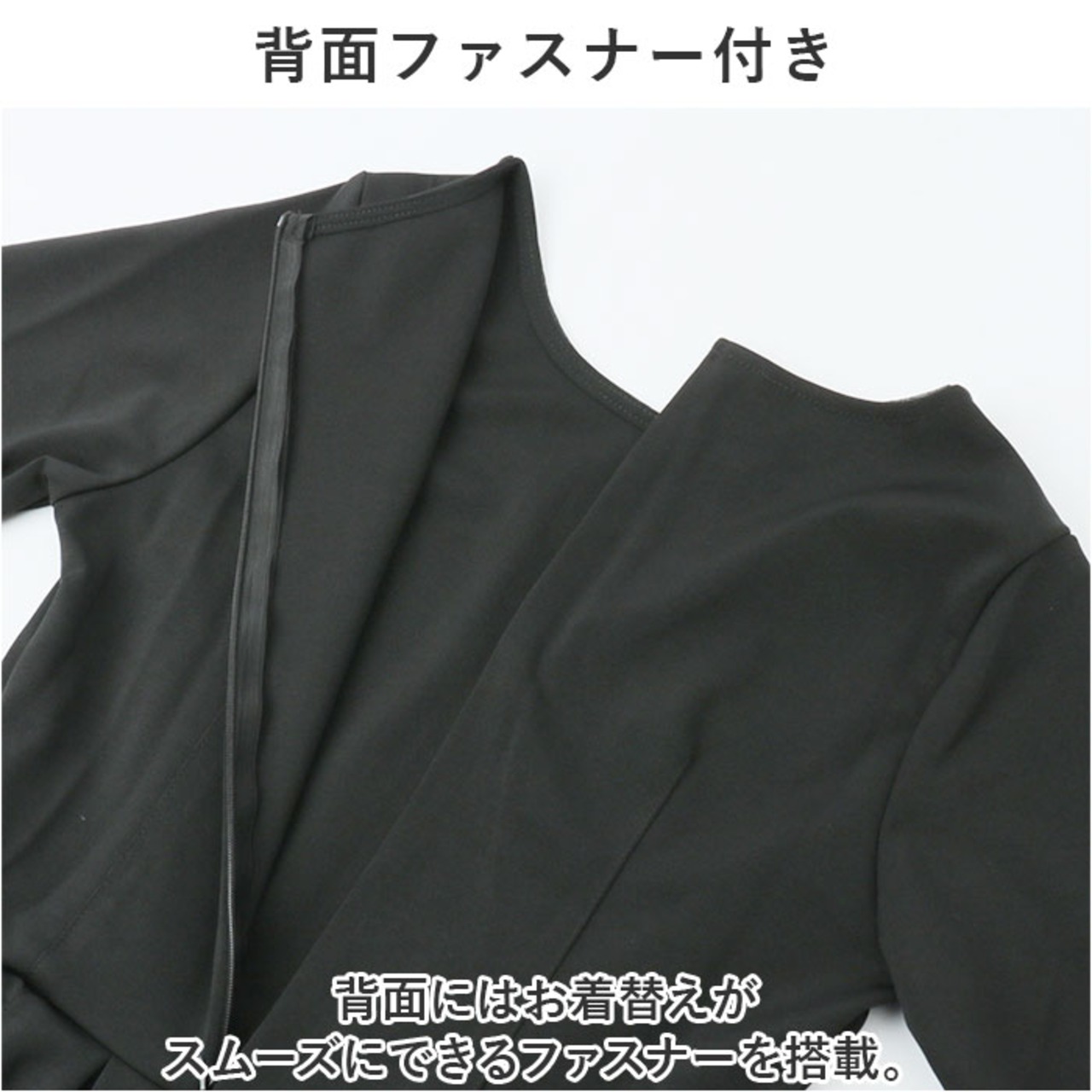 ・背面にはお着替えがスムーズにできるファスナーを搭載。
