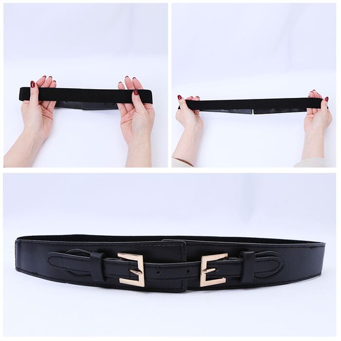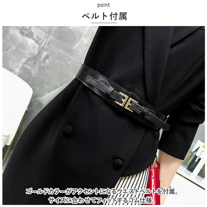 ・ゴールドカラーがアクセントになるウエストベルトを付属。サイズに合わせてフィットするゴム仕様。