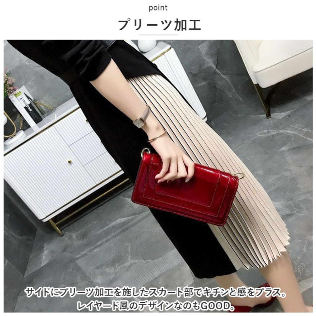 ・普段使いはもちろん、二次会やパーティー等ちょっとしたお呼ばれにも対応!様々なシーンで活躍する優秀アイテム♪