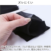 ・ズレ落ち防止のため、ゴムで留まるよう設計。伸縮性のある生地とゴムで脚にフィット。履き心地もラクチン。