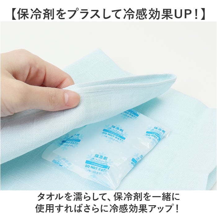 ・タオルを濡らして、保冷剤を一緒に使用すればさらに冷感効果アップ!