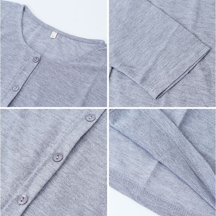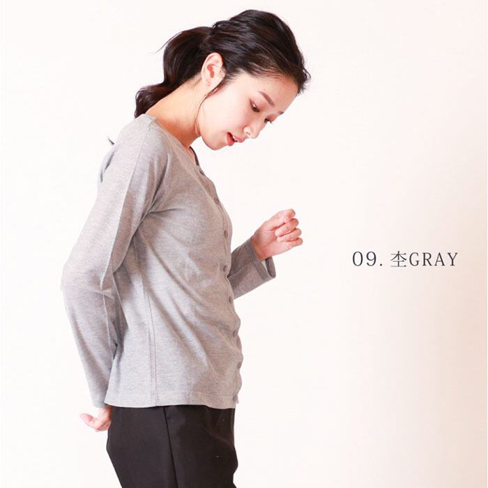 ・着回し力抜群で、優しい印象のネックライン。ボタンを全て留めて、トップス風の着こなしも。