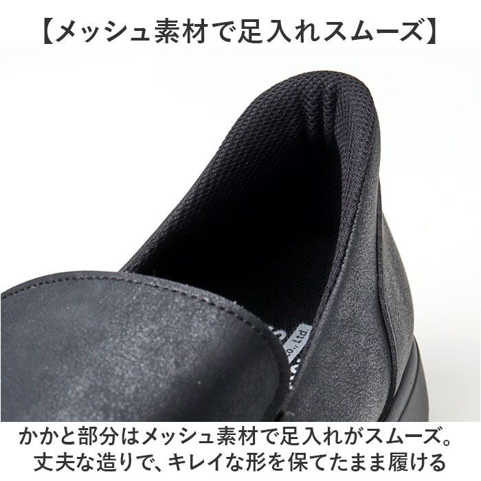 ・かかと部分はメッシュ素材で足入れがスムーズ。丈夫な造りで、キレイな形を保てたまま履ける