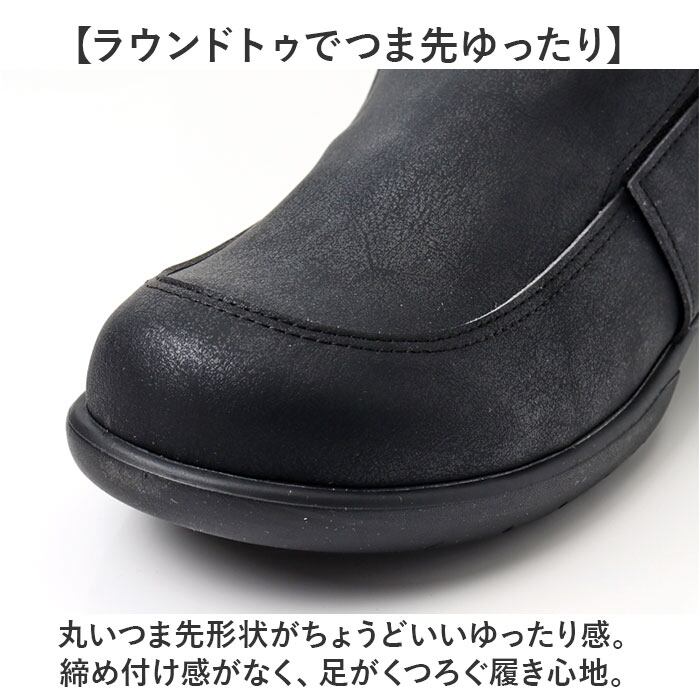 ・シュータン部分に柔らかく伸縮するサイドゴアを内蔵。つま先がスッと入ってストレスフリー。