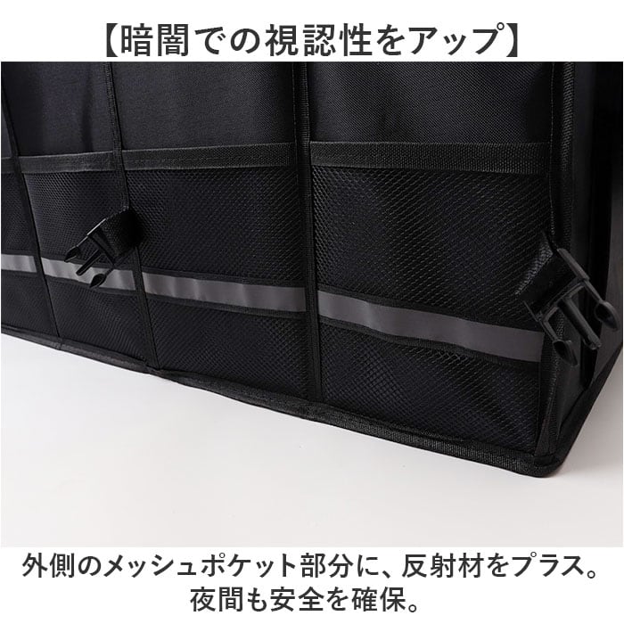 ・外側のメッシュポケット部分に、反射材をプラス。夜間も安全を確保。