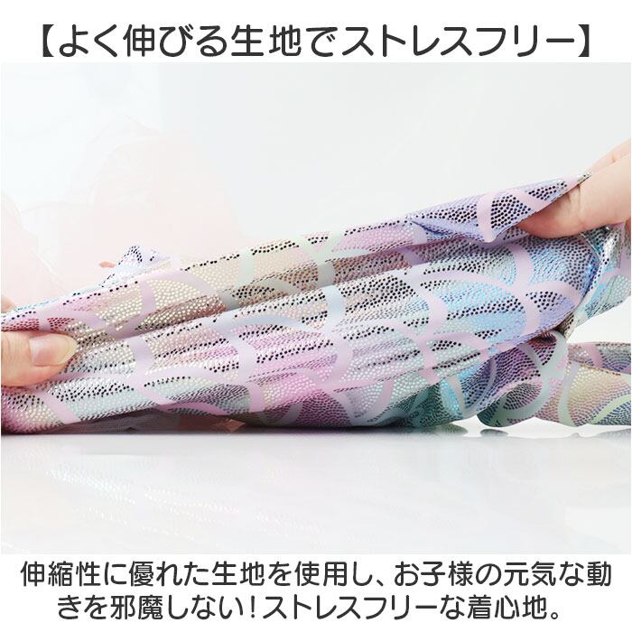 ・伸縮性に優れた生地を使用し、お子様の元気な動きを邪魔しない!ストレスフリーな着心地。