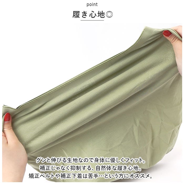 ・グンと伸びる生地なので身体に優しくフィット。補正じゃなく抑制する、自然体な履き心地。矯正ベルトや補正下着は苦手…という方にオススメ。