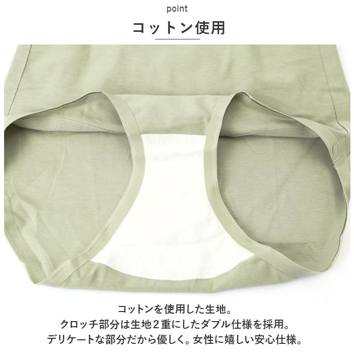 ・コットンを使用した生地。クロッチ部分は生地2重にしたダブル仕様を採用。デリケートな部分だから優しく。女性に嬉しい安心仕様。
