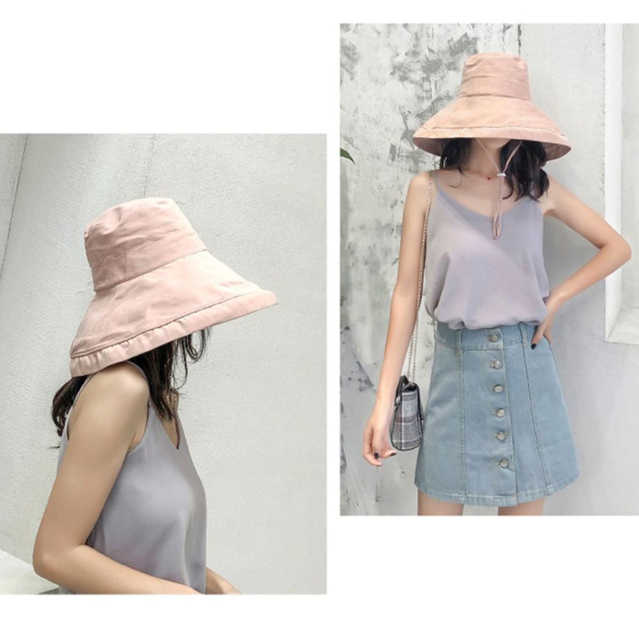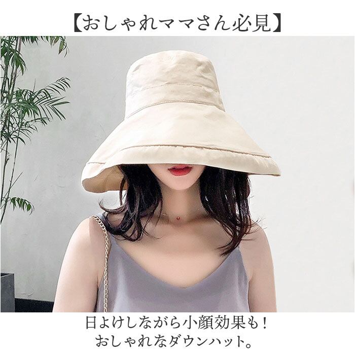 ・日よけしながら小顔効果も!おしゃれなダウンハット。