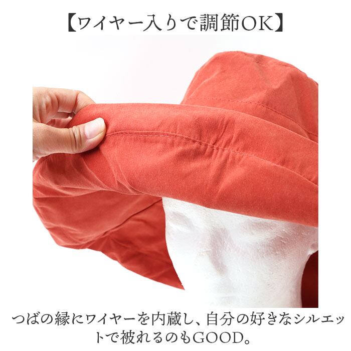 ・つばの縁にワイヤーを内蔵し、自分の好きなシルエットで被れるのもGOOD。