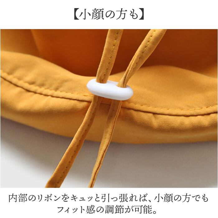 ・内部のリボンをキュッと引っ張れば、小顔の方でもフィット感の調節が可能。