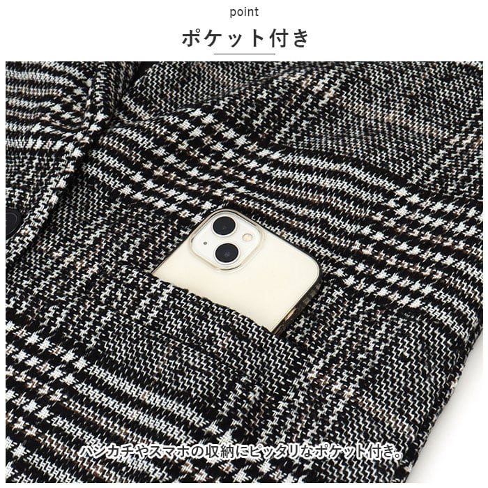 ・シックな印象のグレンチェックと千鳥柄を掛け合わせたデザインが特徴!ベーシックカラーでコーディネートしやすいのもポイント。
