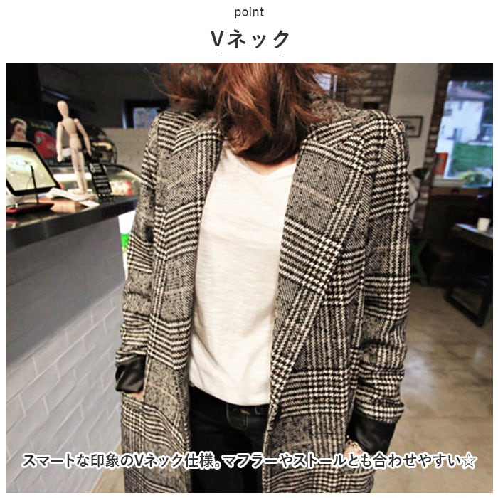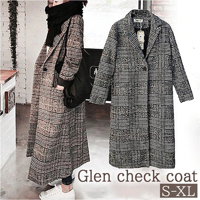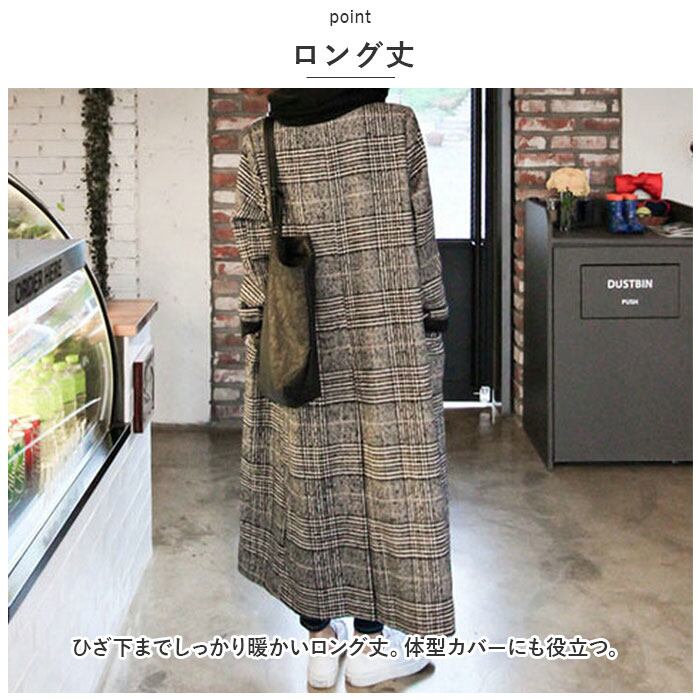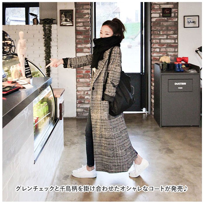 グレンチェックコート レディース 通販 コート ロングコート チェスターコート グレンチェック チェスター ロング丈 ロング 大きいサイズ 冬 秋 柄 チェック柄 千鳥柄 カジュアル アウター オーバーサイズ