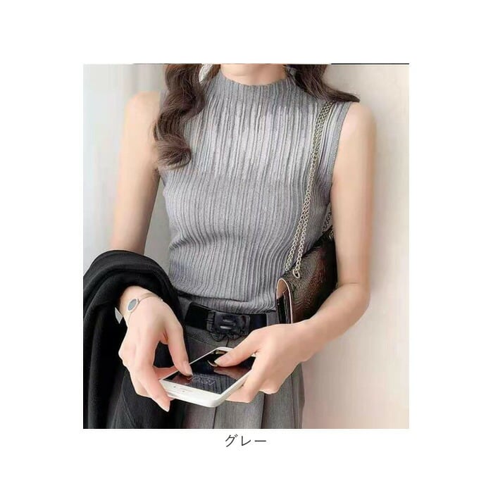 ノースリーブ ハイネック リブ mmhns220f