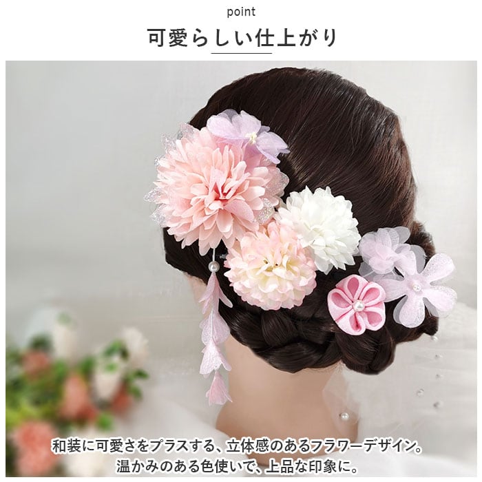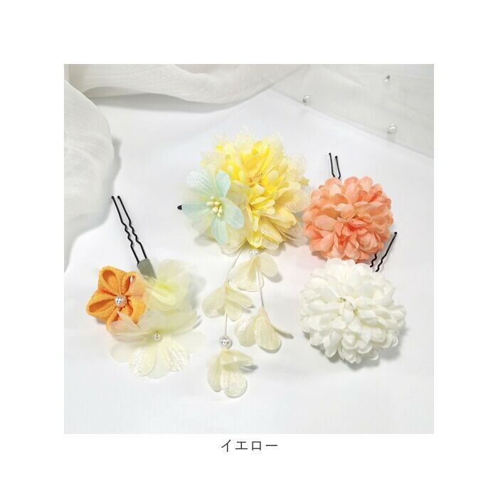 髪飾り 花 通販 ヘアアクセサリー 4点セット セット 髪かざり 花飾り 造花 房飾り フラワー 和装 着物 和服 和風 振袖 袴 成人式 卒業式 結婚式 七五三 着脱簡単 髪留め ヘアアレンジ かわいい おしゃれ 子供 大人