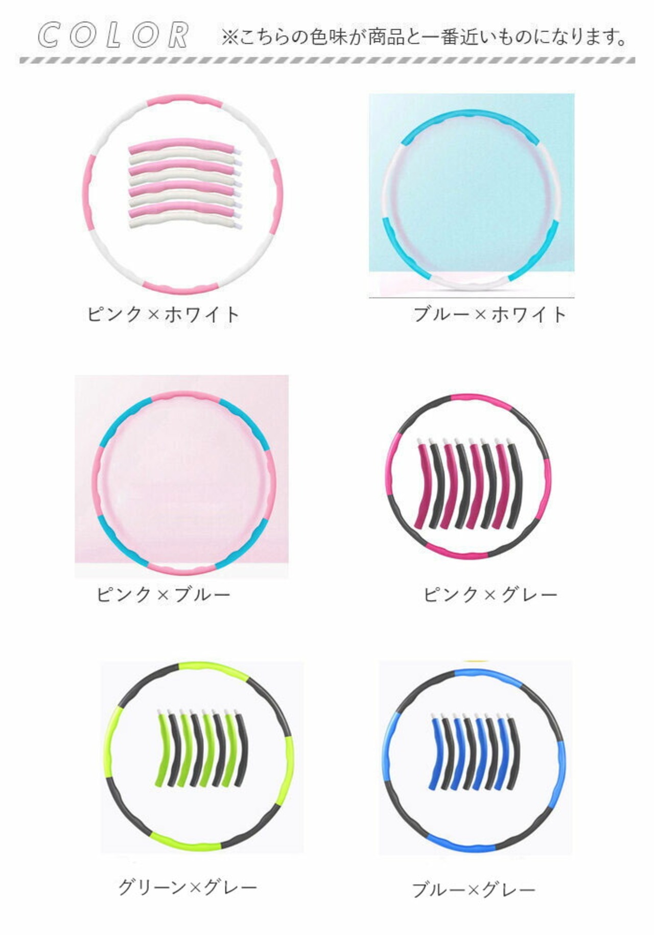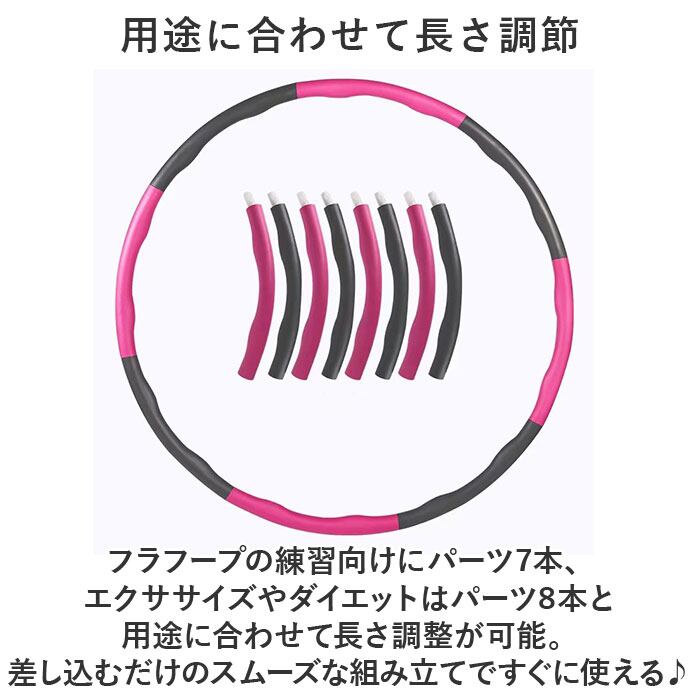 ・フラフープの練習向けにパーツ7本、エクササイズやダイエットはパーツ8本と用途に合わせて長さ調整が可能。差し込むだけのスムーズな組み立てですぐに使える♪