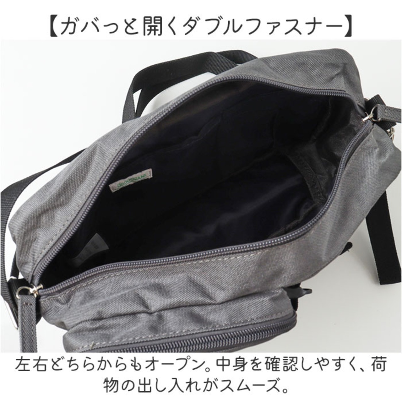 【ガバっと開くダブルファスナー】