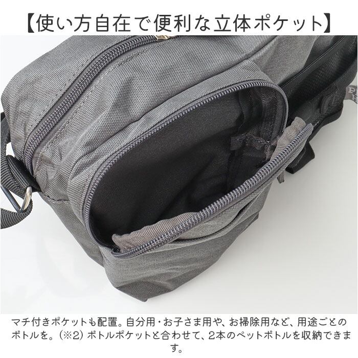 ・マチ付きポケットも配置。自分用・お子さま用や、お掃除用など、用途ごとのボトルを。