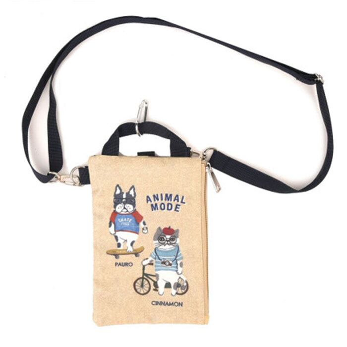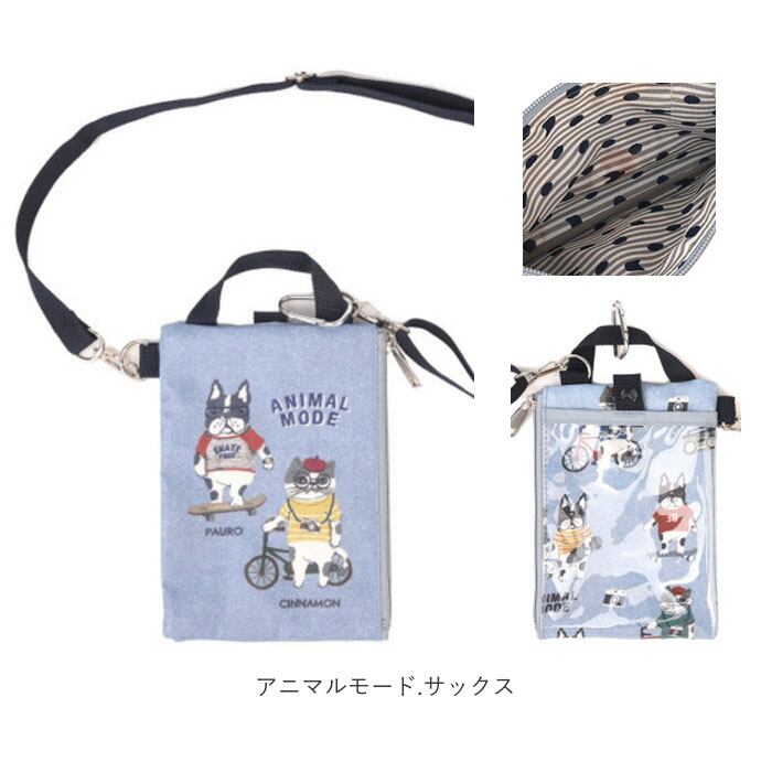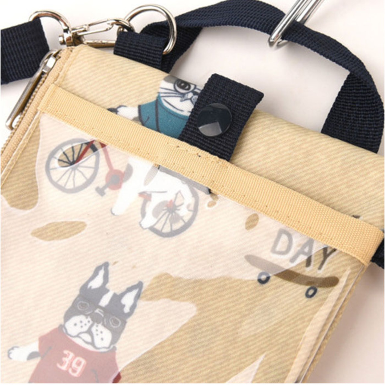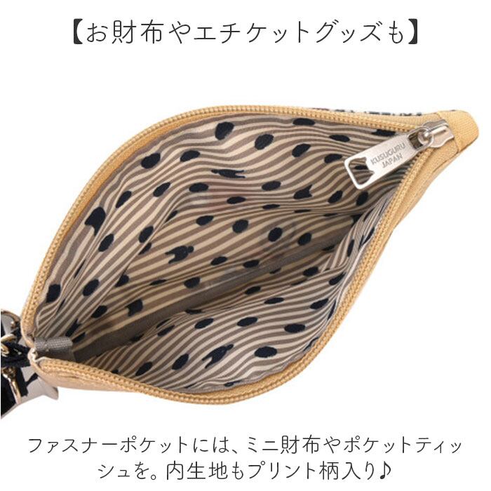 ・ファスナーポケットには、ミニ財布やポケットティッシュを。内生地もプリント柄入り♪