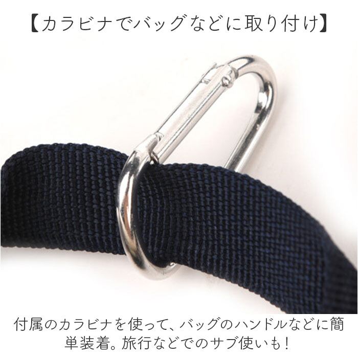 ・付属のカラビナを使って、バッグのハンドルなどに簡単装着。旅行などでのサブ使いも!