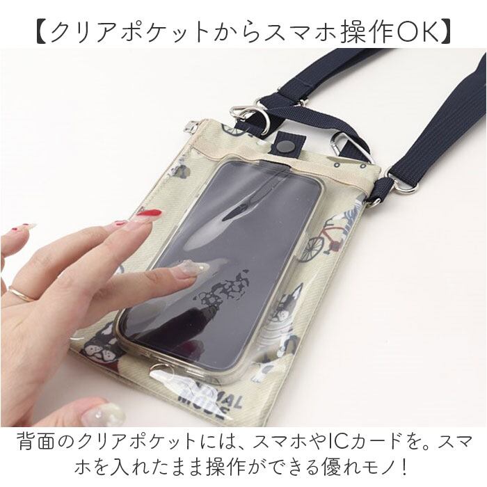 ・背面のクリアポケットには、スマホやICカードを。スマホを入れたまま操作ができる優れモノ!