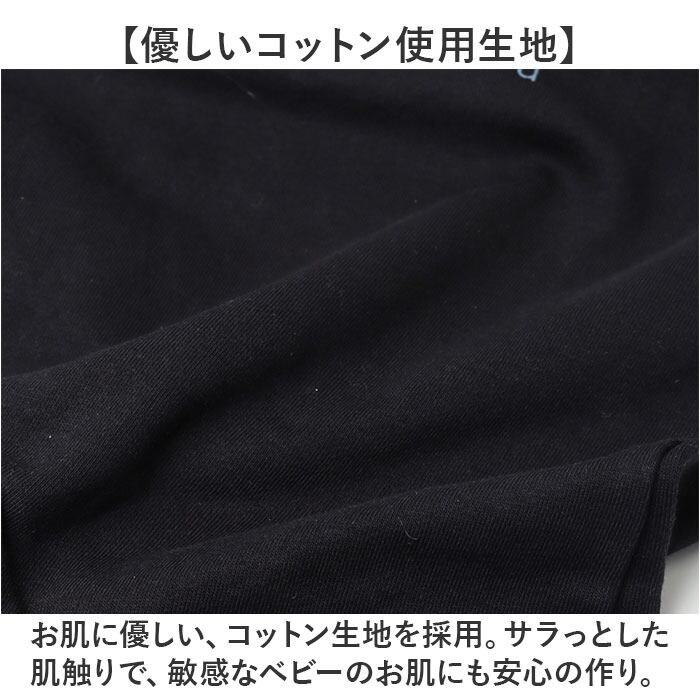 ・お肌に優しい、コットン生地を採用。サラっとした肌触りで、敏感なベビーのお肌にも安心の作り。