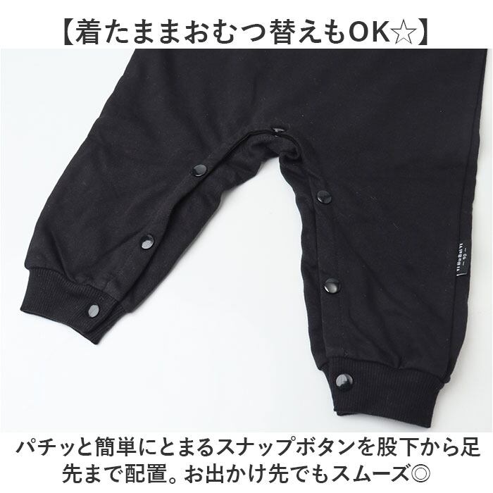 ・パチッと簡単にとまるスナップボタンを股下から足先まで配置。お出かけ先でもスムーズ◎