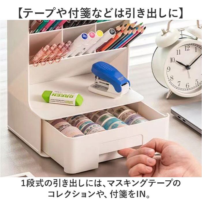 ・1段式の引き出しには、マスキングテープのコレクションや、付箋をIN。