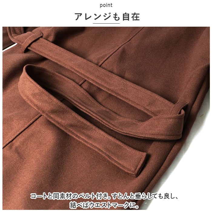 ・コートと同素材のベルト付き。すとんと垂らしても良し、結べばウエストマークに。