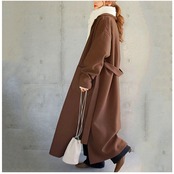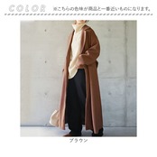 ・ベーシックなフロントボタン仕様で、足元まで覆えるロングコート。サイドにスリットを入れることで、歩くたびにふんわり広がり女性らしい雰囲気を演出。
