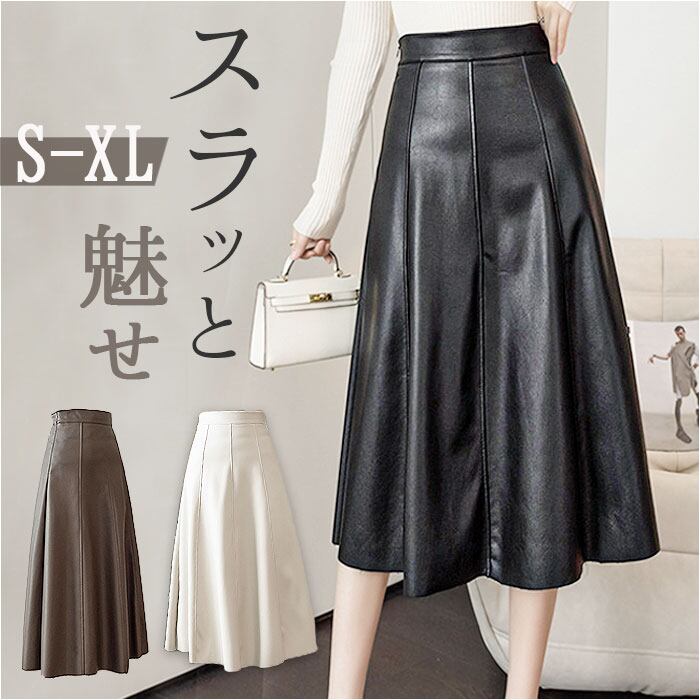 レザー スカート Aライン レディース 通販 レザースカート フレアスカート フレア ミドル丈 ミドル ひざ下 膝下 ボトムス 上品 無地 シンプル 大人 きれいめ 秋冬 秋 冬 おしゃれ オフィス カジュアル 通勤 通学