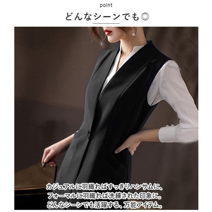 ロングベスト レディース 通販 ロングジレ ジレ ベスト トレンチベスト ジレンチ ノースリーブ アウター トップス ロング丈 通勤 通学 カジュアル ビジネス フォーマル きれいめ 前開き シンプル 無地 おしゃれ