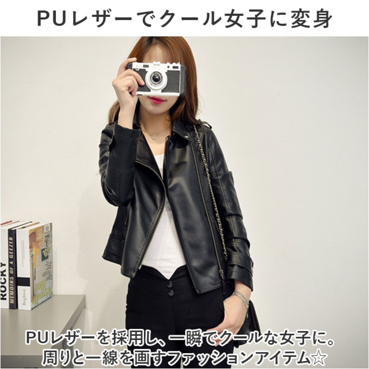 ・PUレザーを採用し、一瞬でクールな女子に。周りと一線を画すファッションアイテム☆