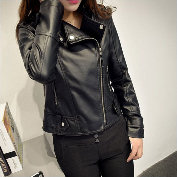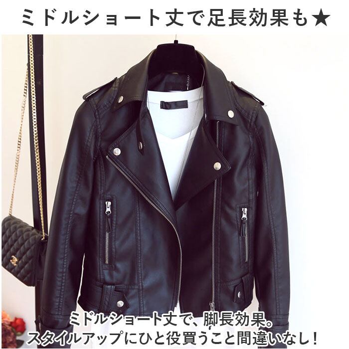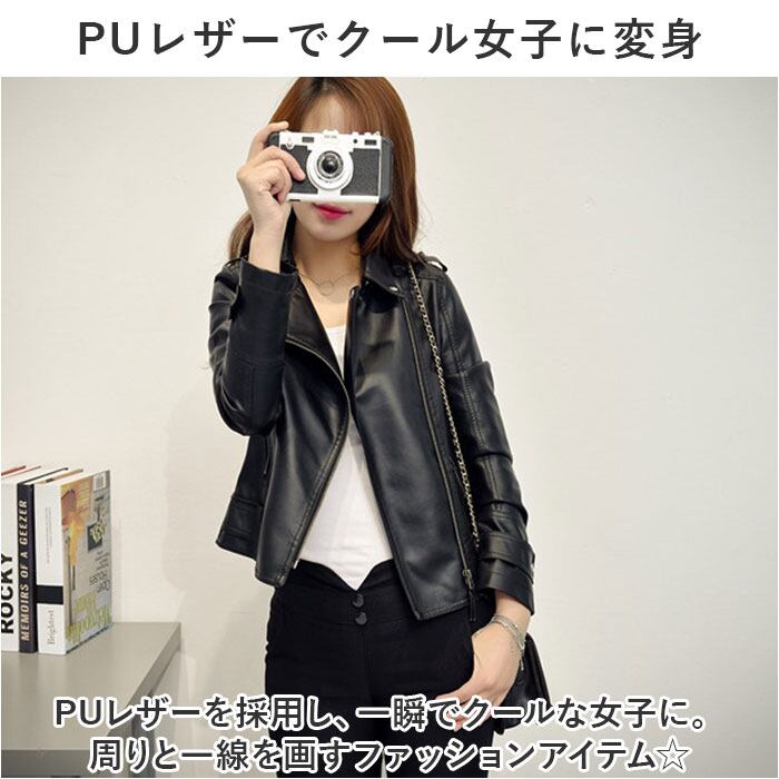 ・スリムフィットする柔らかPUレザーのレディースクールジャケットが新登場!