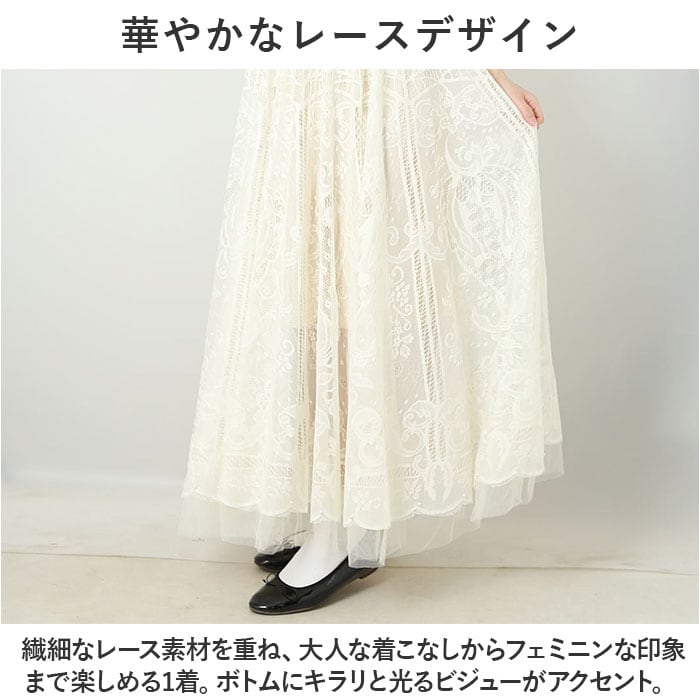 レース ロングスカート レディース 通販 ロング スカート Aラインスカート フォーマルスカート フレア Aライン ハイウエスト ロング丈 ボトムス 大人 きれいめ 華やかな ポリエステル 上品 お祝い 結婚式 婦人服