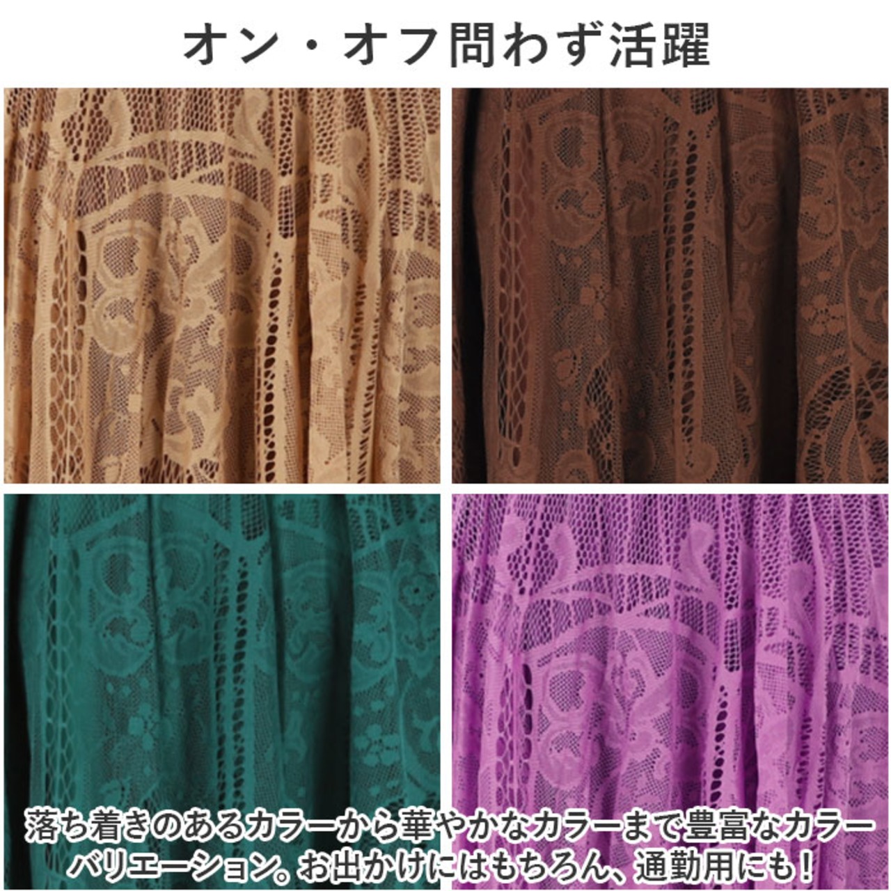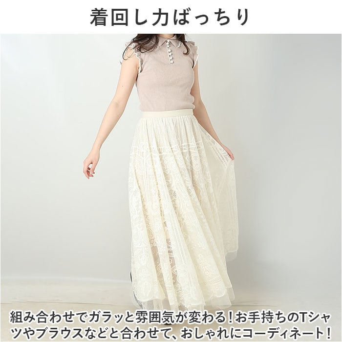 ・華やかな印象を演出してくれるレースデザインのロングスカートが登場。