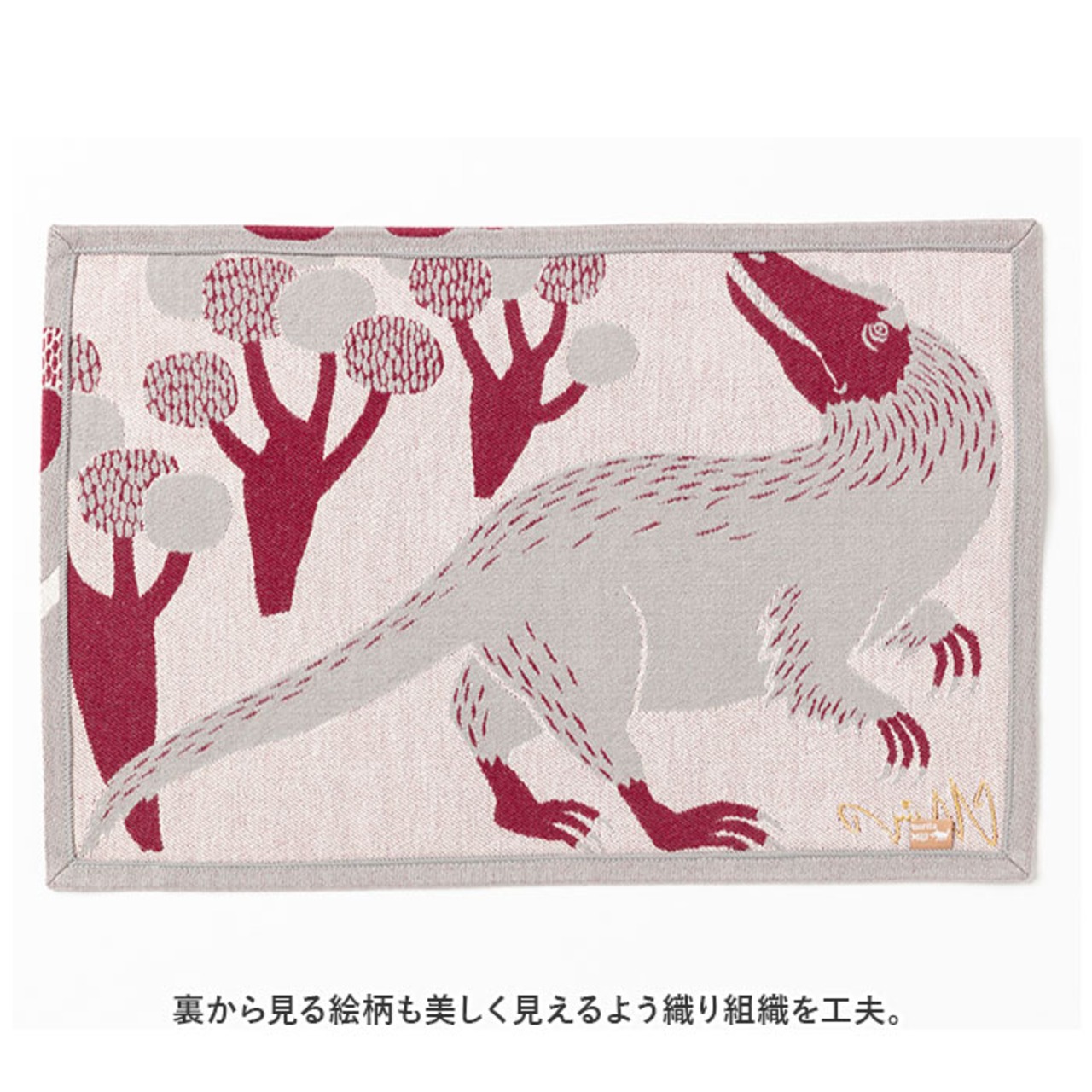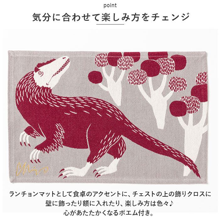 ・ドウブツたちのモチーフが軽やかに遊ぶ絵柄は、高級感のあるシュス織りで描かれたもの。ややしっかりとした厚手の生地感で織り上げたランチョンマット。