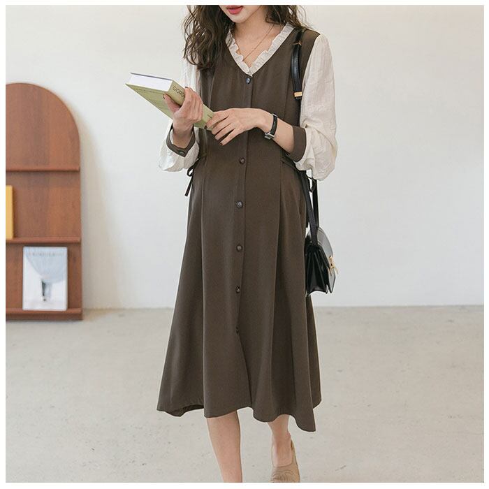 マタニティー ワンピース レディース 前開き 通販 マタニティウェア マタニティ ワンピ 妊婦服 授乳服 マタニティ服 マタニティー服 部屋着 着回し 長袖 ボタン フォーマル オフィス おしゃれ かわいい 可愛い おしゃ 大人 春 秋 冬 お宮参り